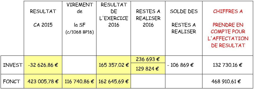 Considérant que seul le résultat de la section de fonctionnement doit faire l'objet de la délibération d’affectation du résultat, (le résultat d'investissement reste toujours en investissement et doit en priorité couvrir le besoin de financement (déficit) de la section d'investissement),