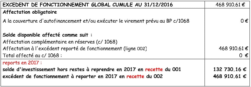 Statuant sur l'affectation du résultat de fonctionnement 2016