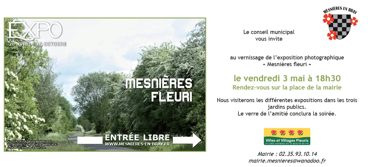 Le conseil municipal vous invite au vernissage de l’exposition photographique « Mesnières fleuri » le vendredi 3 mai à 18h30