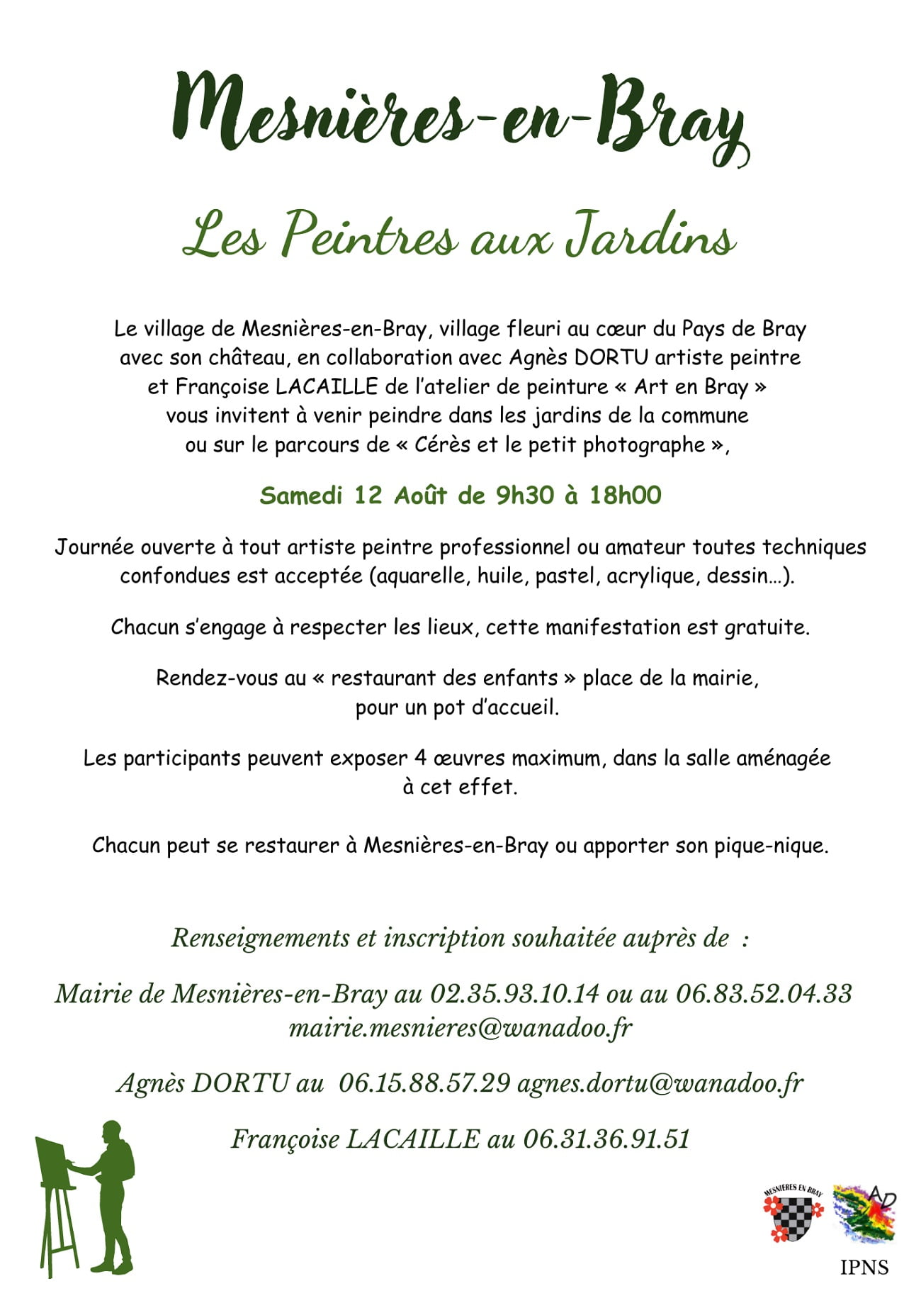 Samedi 12 août 2023 de 9h30 à 18h à Mesnières en Bray, Peintres aux jardins.