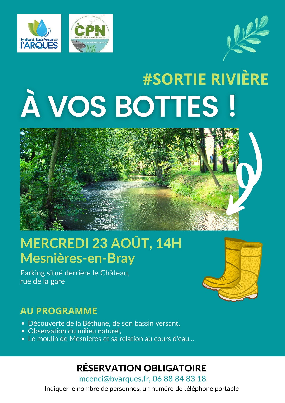 Le mercredi 23 août à 14h, à vos bottes pour une sortie rivière dans la Béthune.