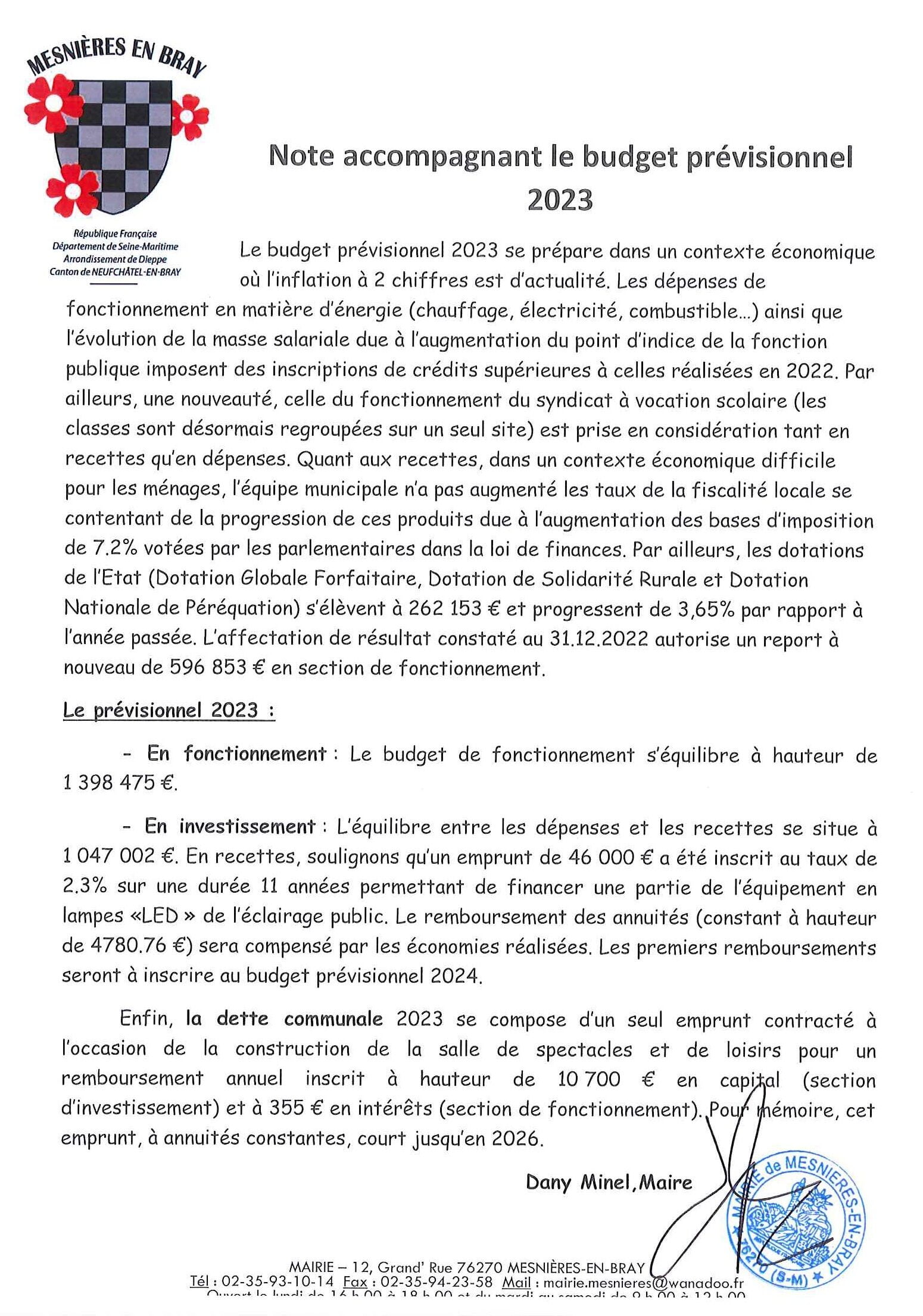 Note rapide sur le BP 2023