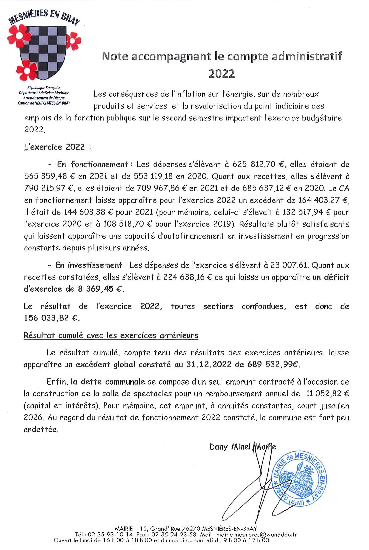 Note rapide sur le CA 2022